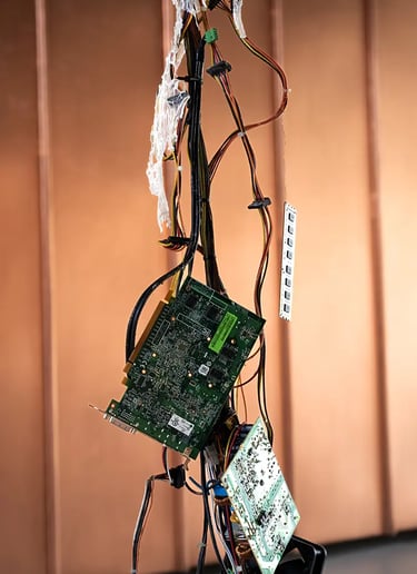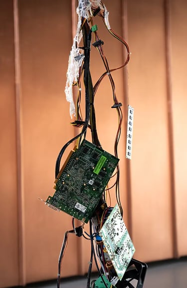 Verre, cartes graphiques, matière organique, vidéo / Glass, computer cards, organic matters, video